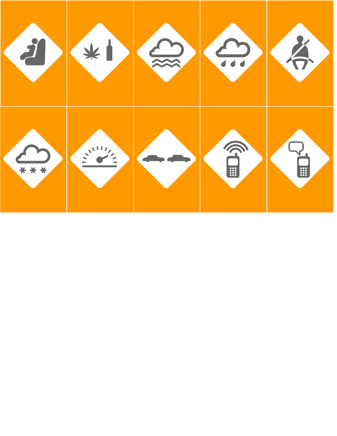 Now that you have all the necessary elements for the game, you can start playing. Place the board on a flat surface and put the orange condition cards face down on the right side of the board. Each player chooses one token to represent him/her while driving around the board.